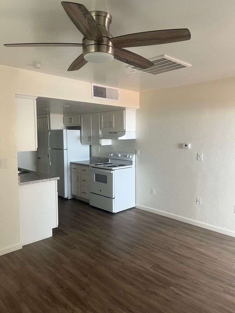 Welcome to our pet-friendly apartment in Tucson, AZ! This cozy one-bedroom, one-bathroom unit is perfect for those seeking a comfortable and convenient living space. Equipped with ceiling fans and an A/C unit, you'll stay cool and comfortable year-round. Our onsite laundry facilities make it easy to keep your wardrobe fresh and clean. Say goodbye to unwanted pests with our reliable pest control services. Located conveniently on the bus line, commuting around the city has never been easier. Plus, with our pet-friendly policy, your furry friends are more than welcome to join you in your new home. Don't miss out on this opportunity to live in a well-maintained and convenient apartment. Contact us today to schedule a tour and make this apartment your new home!