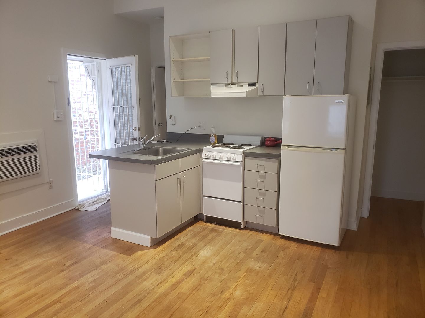 Beautiful Renovated Studio Apartment home at Mt Vernon Square/Convention Center Metro in Mt. Vernon. Walkable to Gallery Place, downtown etc. Unbeatable location! Sunny studio with kitchen, 1 bath, hardwood floors on 2nd floor of art deco building with courtyard, fenced yard and outdoor grilling space. Small pets allowed. 12 Month Lease minimum.